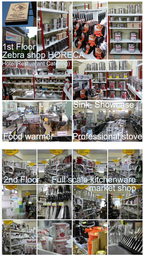 เรามีหน้าร้านอยู่ที่ ซอยกำนันแม้น 7 ถนนกัลปพฤกษ์ สนใจสอบถามรายละเอียดเพิ่มเติมที่ทางโทรศัพท์ 02 453-2015 อัตโนมัติ 5คู่สาย หรือที่อีเมล์ที่เดียวกับ kitchenwaremarket.com ที่ service@kitchenwaremarket.com , horecaware@yahoo.com หรือไลน์ไอดี @kitchenwaremarket